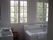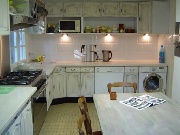 | BEGANE GROND Hal met voordeur, woonkamer met openslaande deuren en vloerverwarming (satelliet tv, dvd's). Volledig ingerichte keuken (bestek/servies, koel/vries combinatie, groot 6 pits gasfornuis met ruime oven, afwasmachine, magnetron, koffiezet apparaat, waterkoker en wasmachine) waar zich bovendien een eettafel bevindt. Tevens is er een kleine badkamer met douche, wastafel en w.c. en is er een berging met strijkijzer en -plank & stofzuiger. 1e VERDIEPING Hal met zijdeur naar de tuin, twee ruime slaapkamers: een met wastafel en tweepersoons boxspring en een met twee éénpersoons bedden, beide zeer comfortabel met kledingkast. Royale badkamer met dubbele wastafel, ligbad, separate douche, grote inbouwkast en toilet. 2e VERDIEPING 2 grote slaapkamers, elk met 2 éénpersoons bedden en kledingrekken. Ruime overloop met 2 bedden |