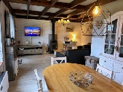 | •Vakantiehuisje voor max. 6 personen Duinendaele 213 (op vakantiepark Duinendaele) •3 afzonderlijke slaapkamers (in totaal 6 slaapplaatsen). Eén op het gelijkvloers met een groot tweepersoonsbed (1.80m/2.00m) en twee kamers op de verdieping: 4 slaapplaatsen. In iedere kamer zijn er donsdekens en kussen aanwezig • een gloednieuwe en volledig ingerichte open keuken met keramische kookplaten, een oven, grote koelkast met diepvriesvakken, een microgolfoven, een geïntegreerde vaatwas, koffiezetapparaat, waterkoker en natuurlijk allerhande keukengerief •gezellige eethoek met zes zitplaatsen •zithoek met comfortabele zetels en een houtkachel. • nieuwe badkamer met wastafel, een inloopdouche en een toilet •ruime zuidgerichte tuin met zonneterras ° flatscreen TV met DVD, kinderbed, verhoogstoel, kist vol speelgoed voor de kinde |