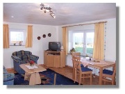 | 1 tweepersoons slaapkamer, een tweepersoons-slaapbank en woonkamer, woon/eetkamer met keuken (magnetron, 4 pits kookplaat, oven, koel/vriescombinatie, afwasmachine enz.), douche/wc, sat.TV, radio/cd, telefoon, gratis dsl-internet-toegang via WLAN, terras, aparte ingang, rolstoelvriendelijk. Huisdieren folgens afsprak, 4euro/Nacht. |